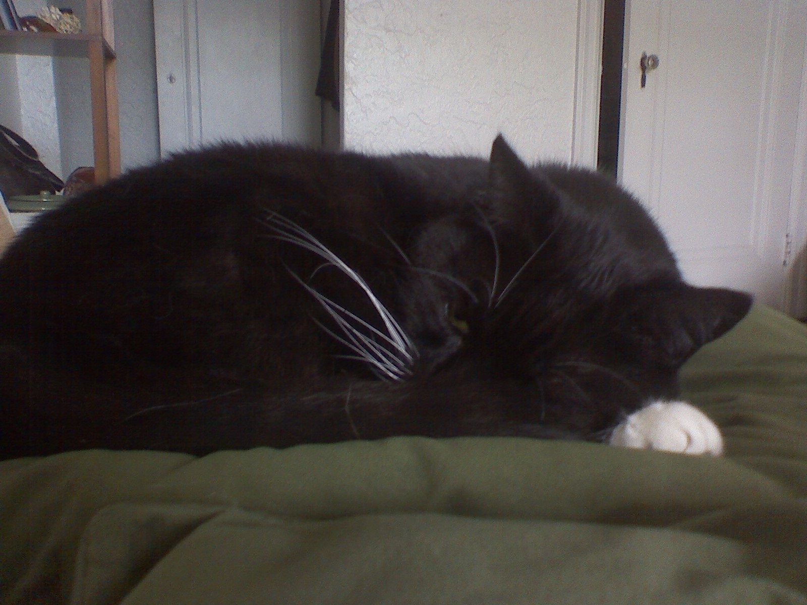- When I get comfortable at night, they come lie next to a bend in my body so that I have to monitor my movements throughout the night to avoid clobbering their soft bodies with my monstrous limbs.