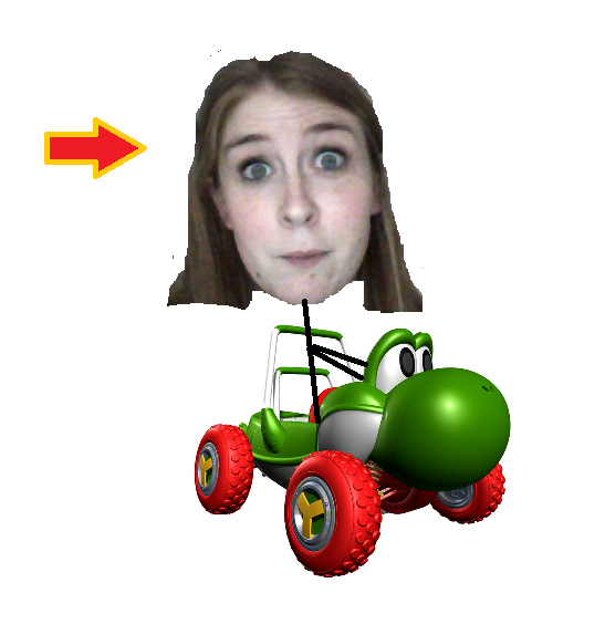 Also poorly cropped. And in a Yoshi go-kart.  I’m disappointed that this image is not representative of my actual vehicle.